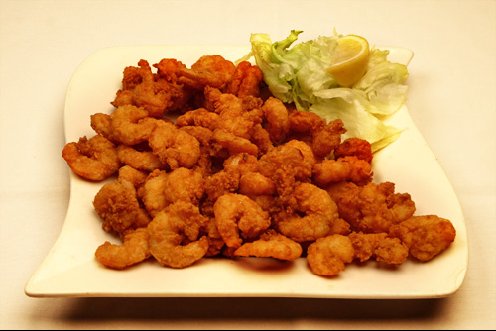 shrimp, scallops, clam strips, sole, calamari and french fries