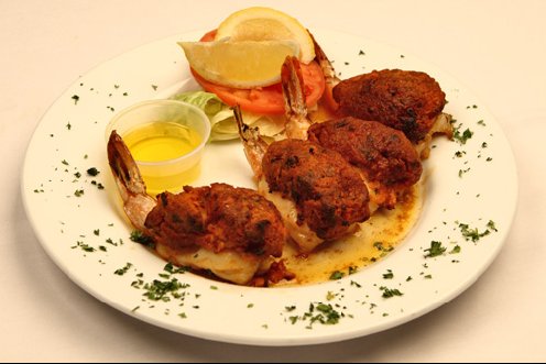 tender jumbo shrimp with a seafood stuffing, butter, lemon, and sherry wine cooked to perfection